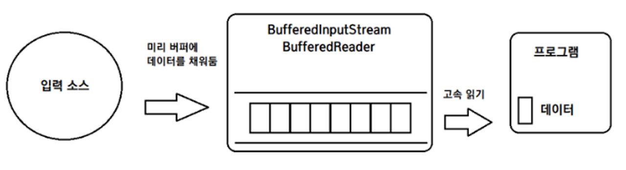- 버퍼링: BufferedInputStream, BufferedOutputStream, BufferedReader, BufferedWriter 는 내부적으로 버퍼를 사용하여 데이터를 모아서 한 번에 처리합니다. 이는 입출력 효율을 대폭 향상시킵니다.