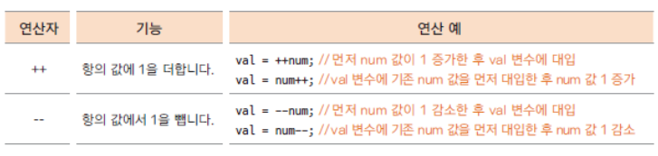 * 변수에 접근해서 그 값을 조직 1증가 또는 1감소 시킨다.