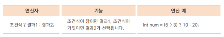 - 조건식의 결과가 true(참)인 경우와 false(거짓)인 경우에 따라 다른 결과가 수행됨