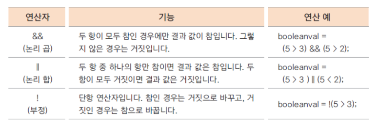 | 논리 연산자 | &, ||, ! | !만 1순위, 나머지는 6순위 |