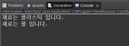 System.out.println("플라스틱 재료로 출력 합니다.");
