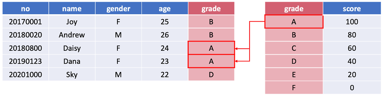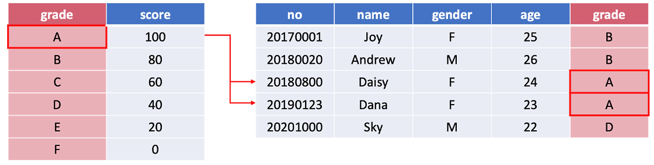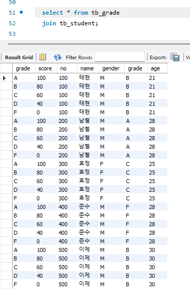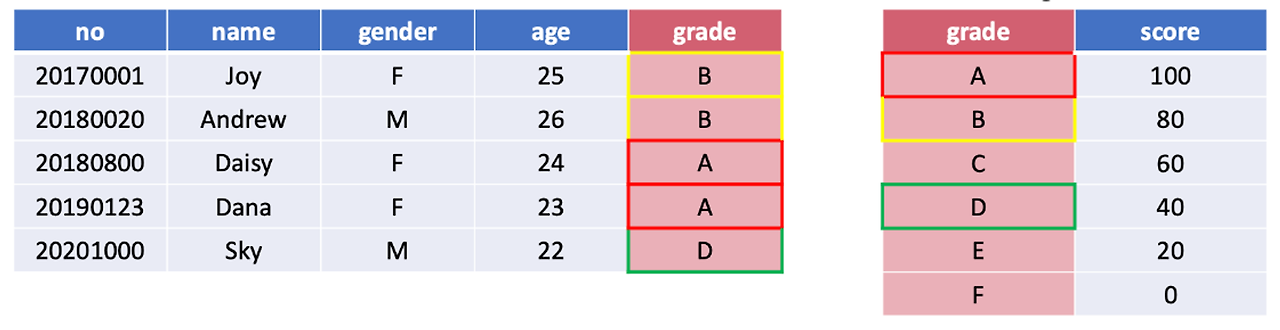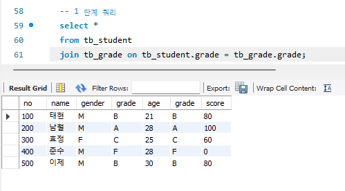 join tb_grade on tb_student.grade = tb_grade.grade;