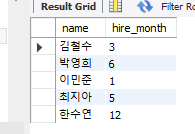 -- 문제 8 : 각 직원의 고용 월을 반환하세요.