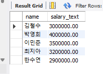 -- 문제 9 : 각 직원의 급여를 문자열 형태로 표시 하시오