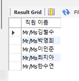 -- 이름 앞에 'Mr/Ms' 를 추가하세요