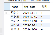 ( year(current_date) - year(hire_date) ) + 1 as '년차'