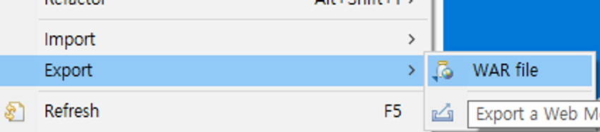 - 프로젝트를 우클릭하고 Export를 선택합니다.