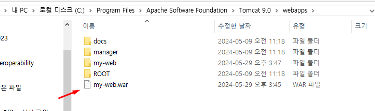 WAR (Web Application Archive) 파일은 Java 웹 애플리케이션을 패키징하기 위한 표준 형식이며, 웹 애플리케이션을 구성하는 모든 파일들을 하나의 압축 파일로 묶어 포장한 것.