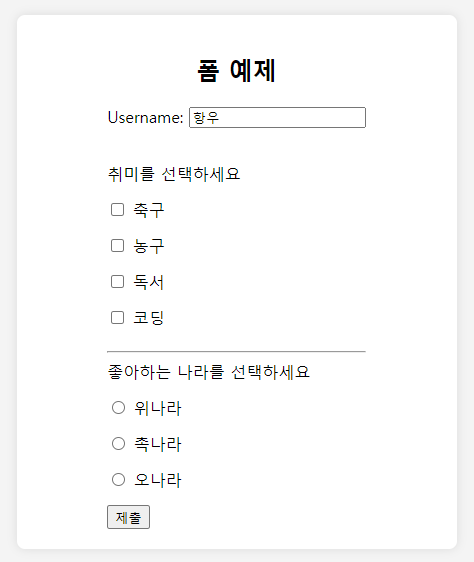 - 폼 태그를 사용하여 사용자 입력 데이터를 서버로 전송할 수 있습니다.