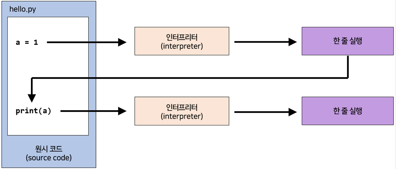 💡 인터프리터 언어의 경우, 코드를 실행하기 위해 컴파일 단계가 없습니다. 대신, 소스 코드가 런타임에 직접 해석되고 실행됩니다.