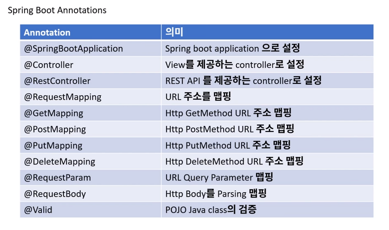 - @Controller: 웹 애플리케이션의 컨트롤러 클래스를 표시합니다.