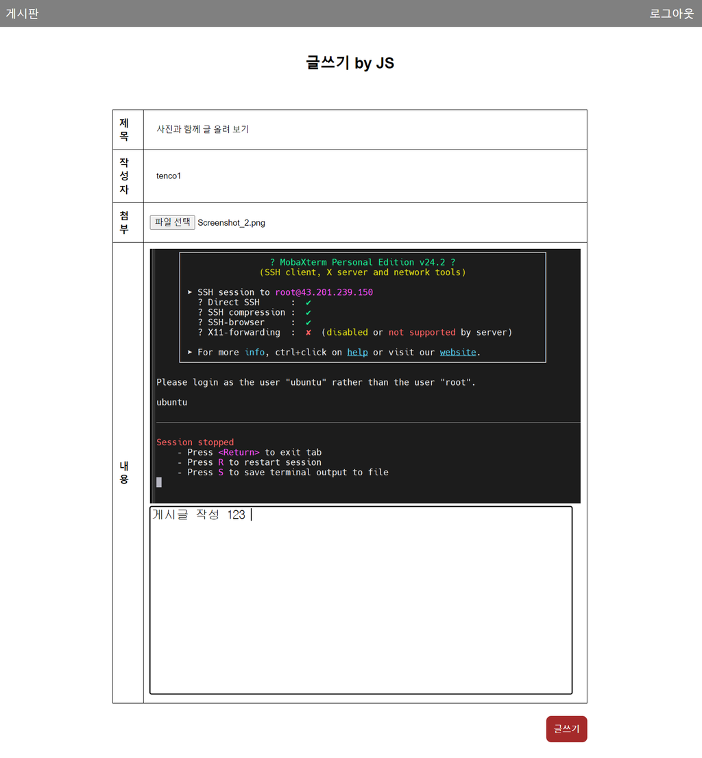 // 글 저장시에 로컬스토리지에 바이너리 데이터를 -- 64 인코딩 저장