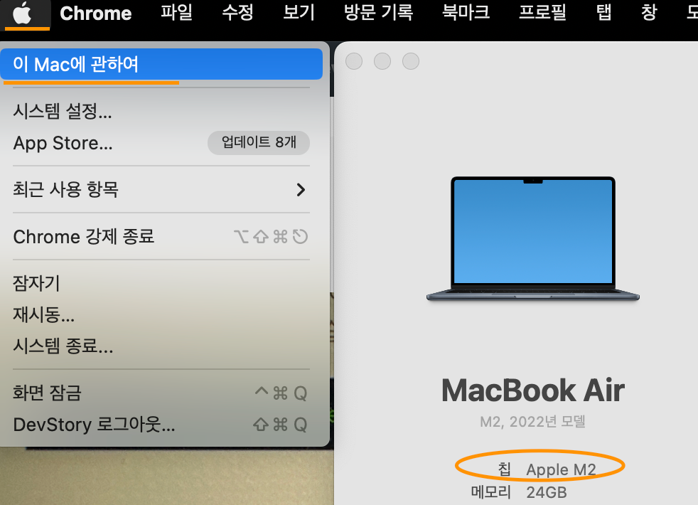 2. 사용중이신 Mac의 정보를 아래와 같이 확인해 주세요.