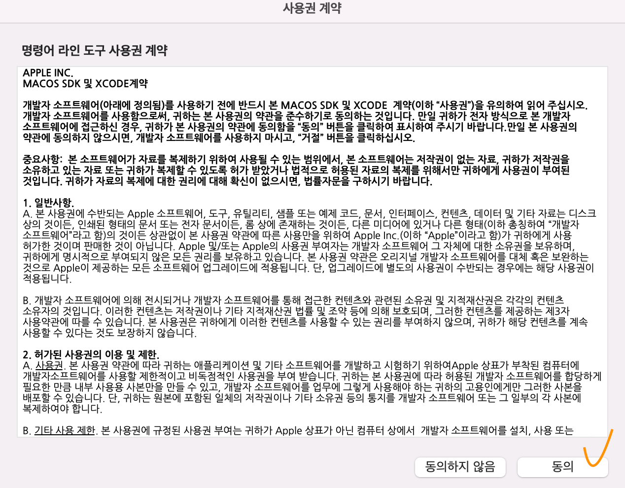 8. 사용권 계약 팝업이 뜨면 동의 버튼을 눌러주세요.