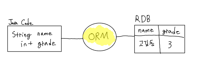 ORM(object-relational mapping)은 자바의 객체와 데이터베이스를 연결하는 프로그래밍 기법입니다. 예를 들어, RDBMS에 name과 grade라는 컬럼에 각각 '고길동'과 '3'이라는 값이 들어있다고 생각해봅시다. 이 값을 자바 코드에서 사용하려면 JDBC API를 포함한 다양한 설정과 사전 지식이 필요합니다. 또한, SQL에 대한 공부도 필수적입니다. 하지만 ORM을 사용하면 데이터베이스에 존재하는 값들을 마치 자바 객체처럼 사용할 수 있습니다. 쉽게 말해, SQL을 전혀 몰라도 자바 언어로만 데이터베이스에 접근하여 값을 받아와 사용할 수 있습니다. 즉, 객체와 데이터베이스를 자바 언어로만 다룰 수 있게 하는 기술이 바로 ORM입니다. 물론 이 기술은 자바뿐만 아니라 다양한 언어에서도 제공됩니다.