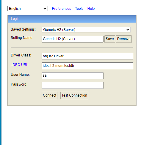 username: sa # 데이터베이스 연결 시 기본 사용자 이름