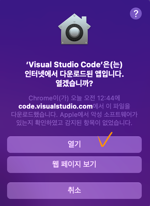 8. 아래와 같은 팝업이 뜨면 열기 버튼을 눌러주세요.