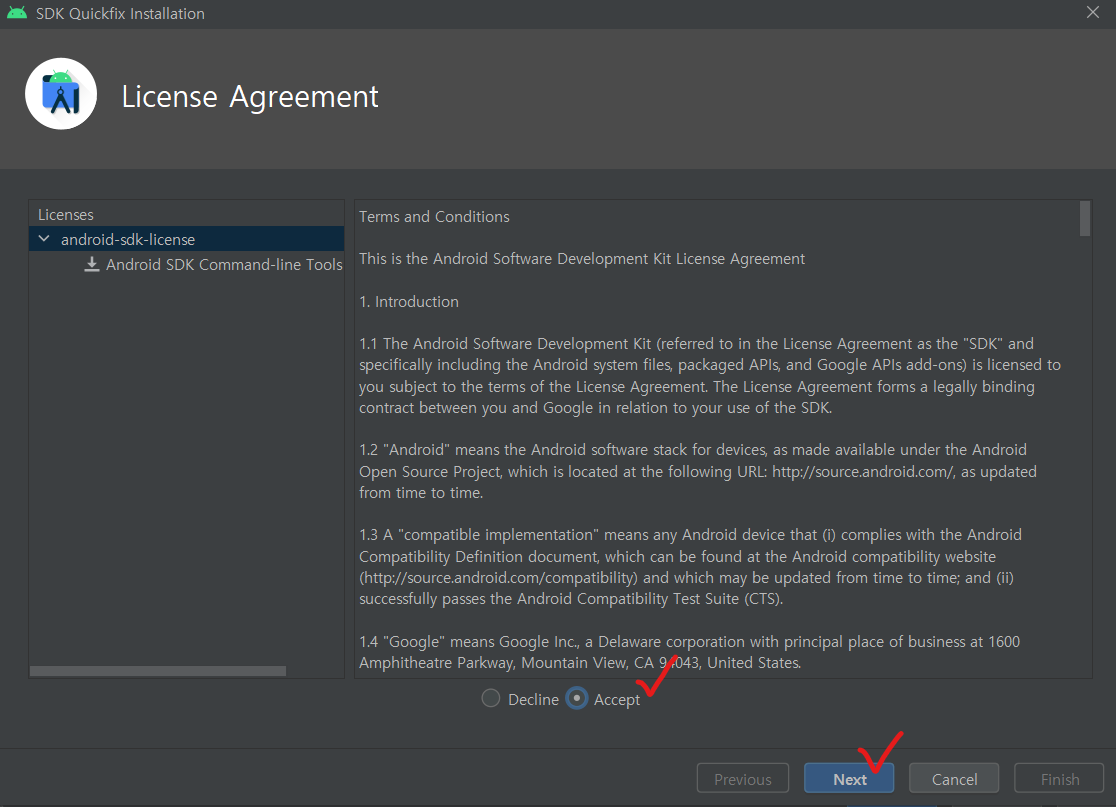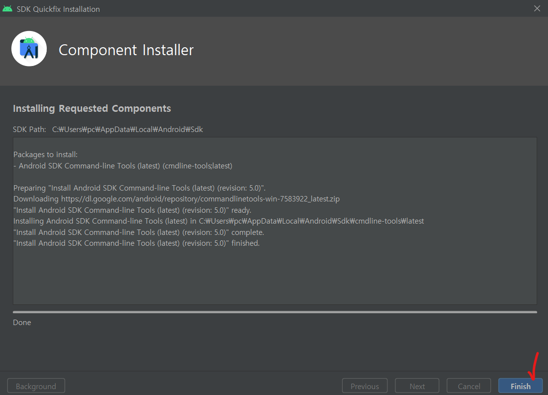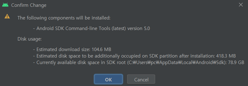 | 💡 Android Command-line Tools는 Flutter에서 Android에 명령을 내리기 위해 필요합니다. |
