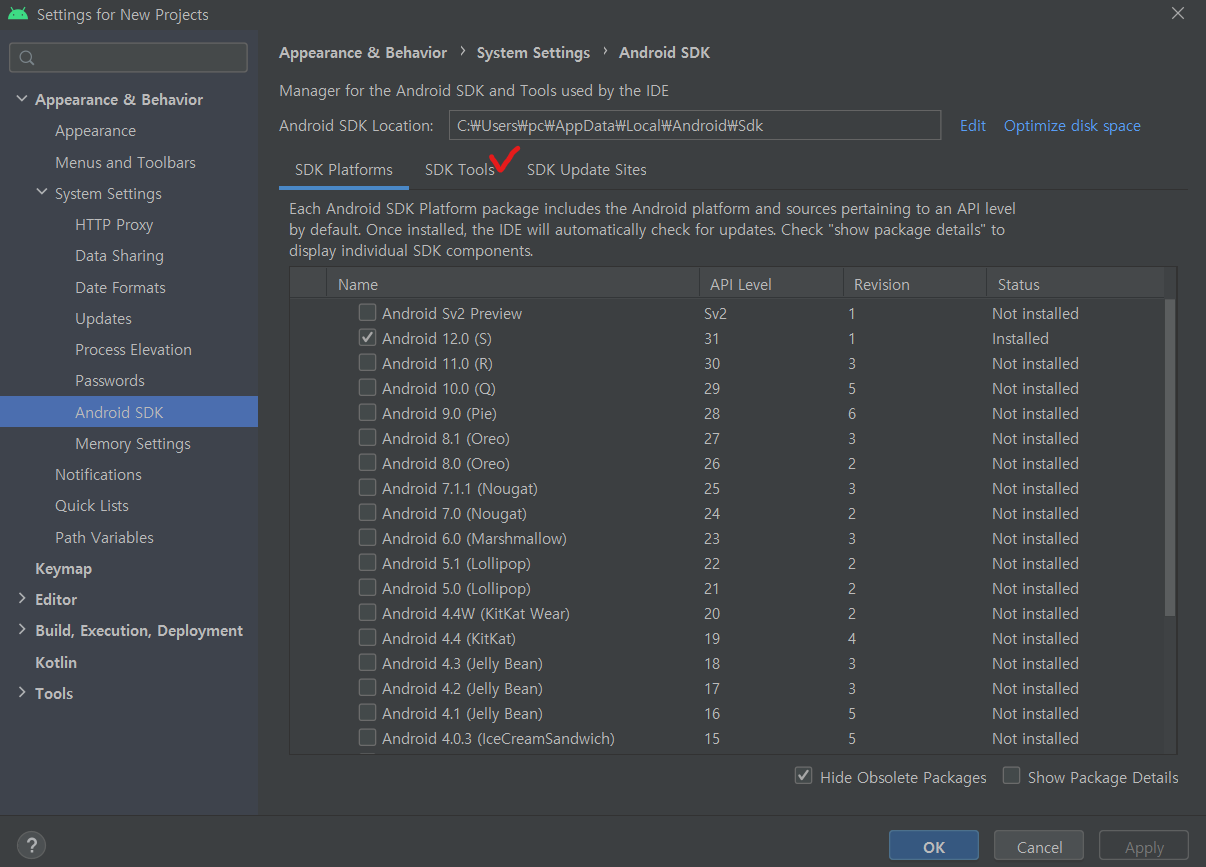 2. SDK Tools를 선택해 주세요.