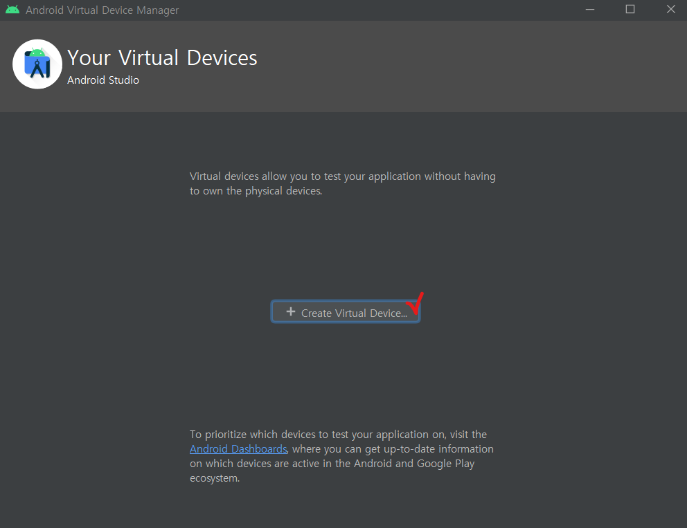 2. Create Virtual Device를 선택해주세요.