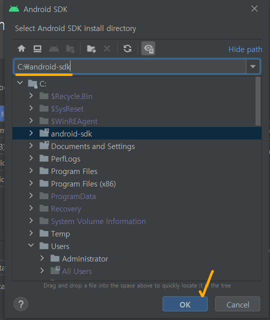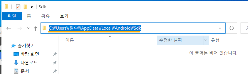 Android SDK Location 경로를 직접 만들어주도록 하겠습니다.