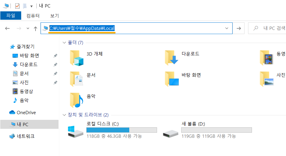 다음 탐색기에서 주소창을 클릭해 주세요.