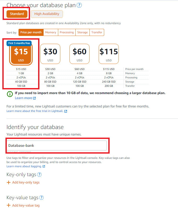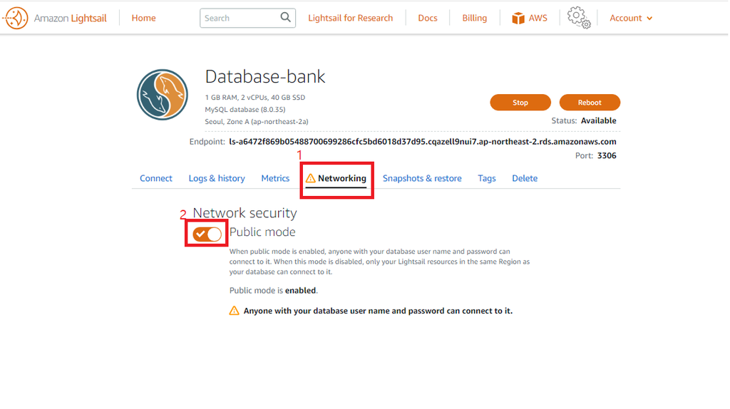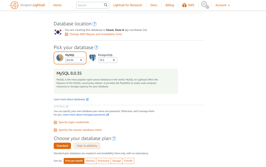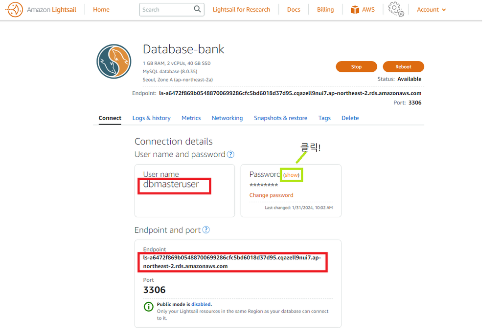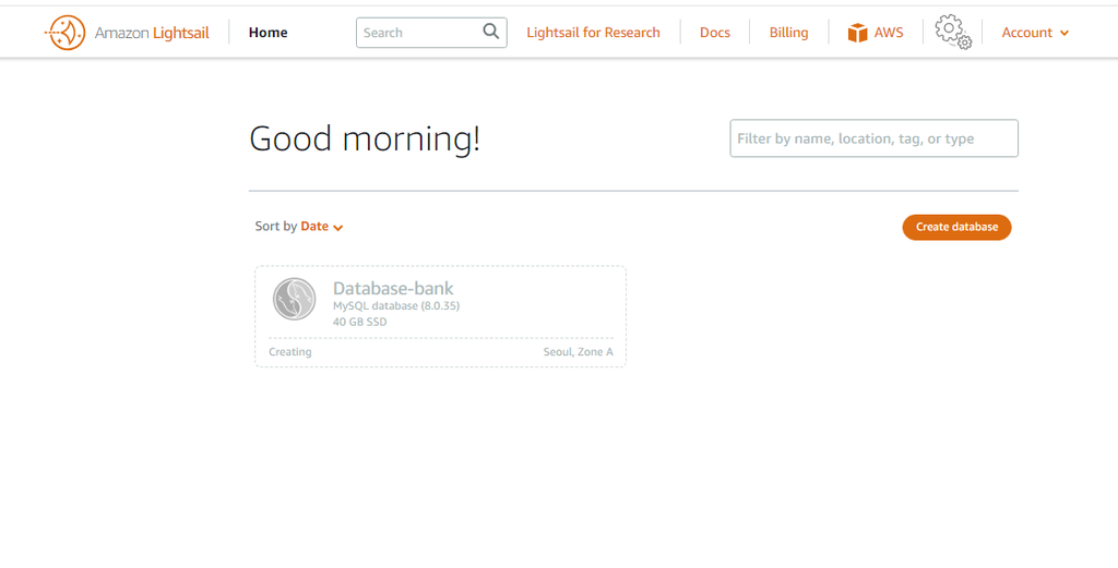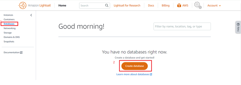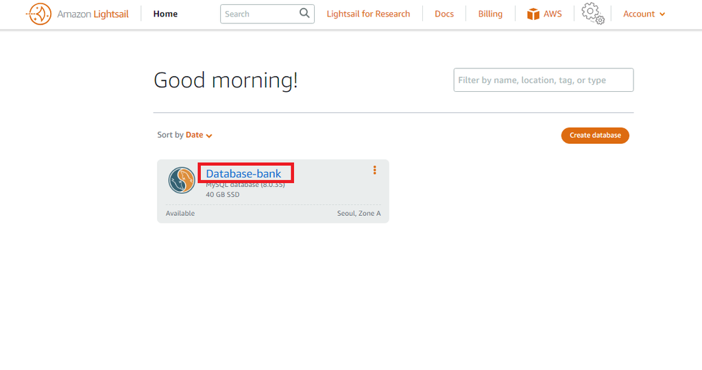 Lightsail 화면에서 왼쪽 카테고리에 Databases를 클릭해주시고
