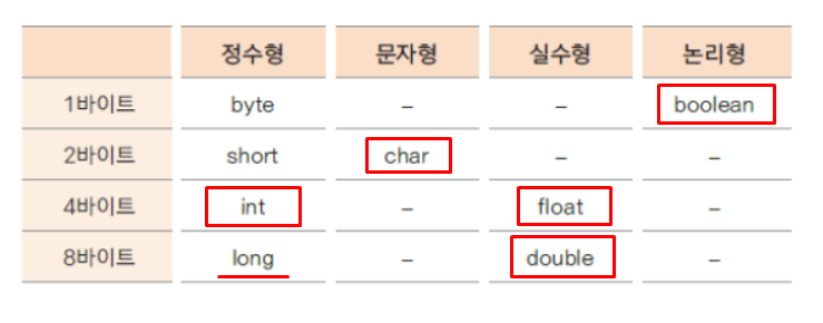 - 자바 언어에서 제공되는 데이터 타입