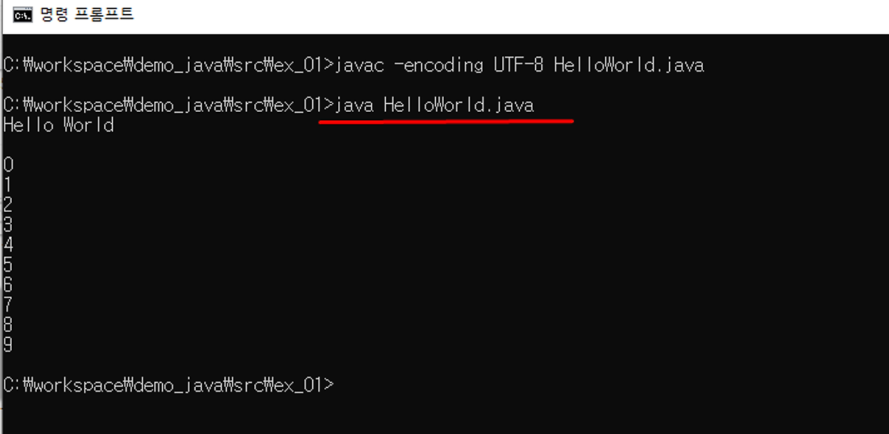 --> 해당 디렉토리에서 HelloWorld.class 파일이 생성 됨