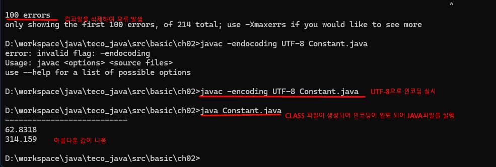 안될 경우 : javac -encoding UTF-8 Constant.java